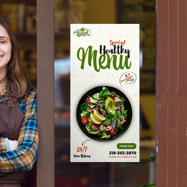 Popular decal signage that can be applied to any flat surface.